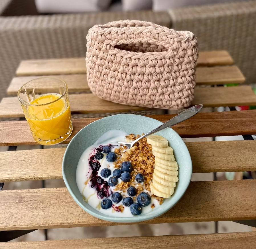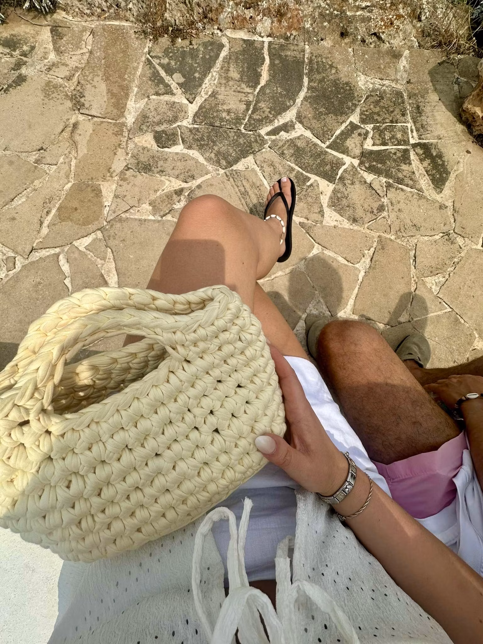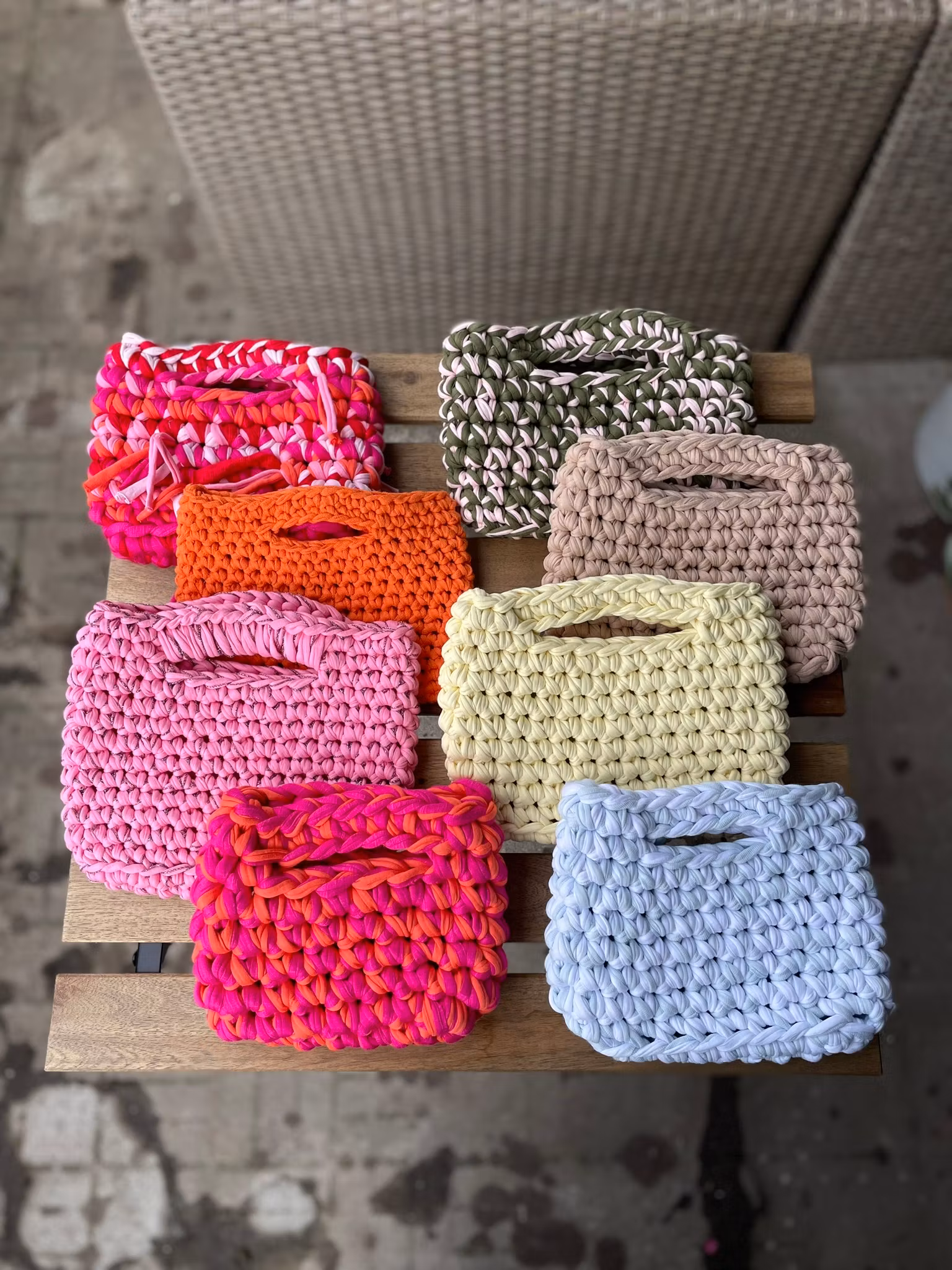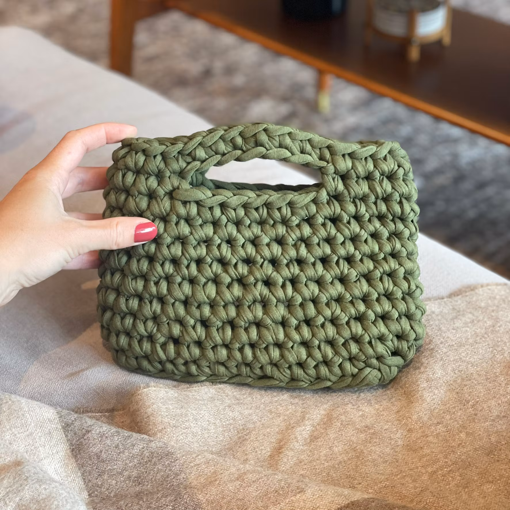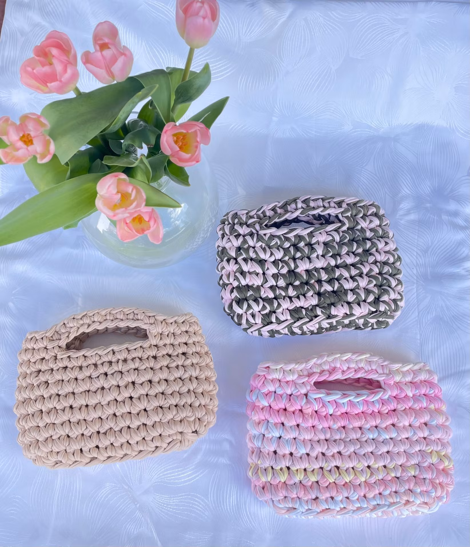 Maritveska er en liten, chunky veske med innebygde håndtak og masse sjarm! Den hekles i ett stykke med tykt båndgarn og store masker, og passer perfekt for deg som vil lage noe praktisk og fint – uten for mye dill.