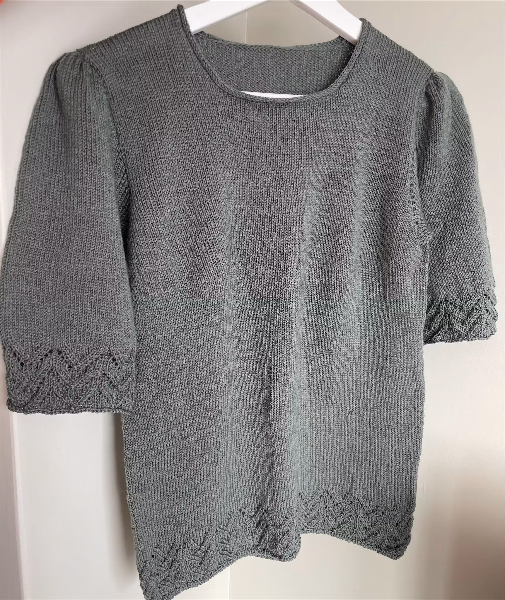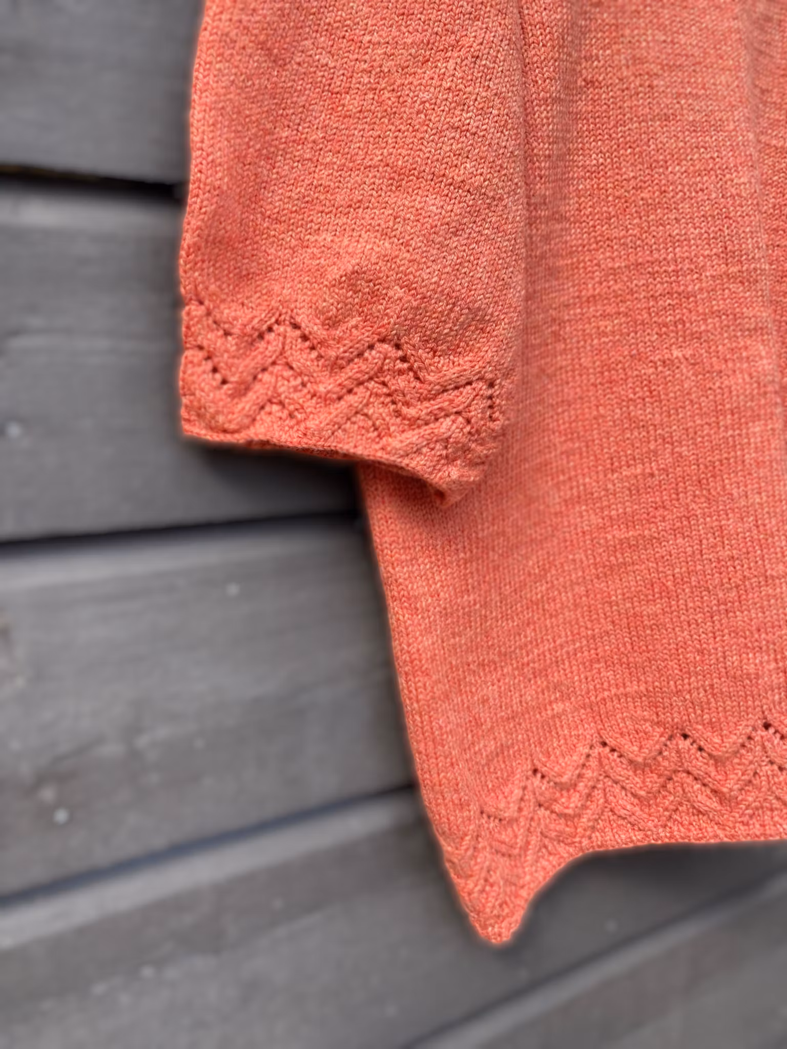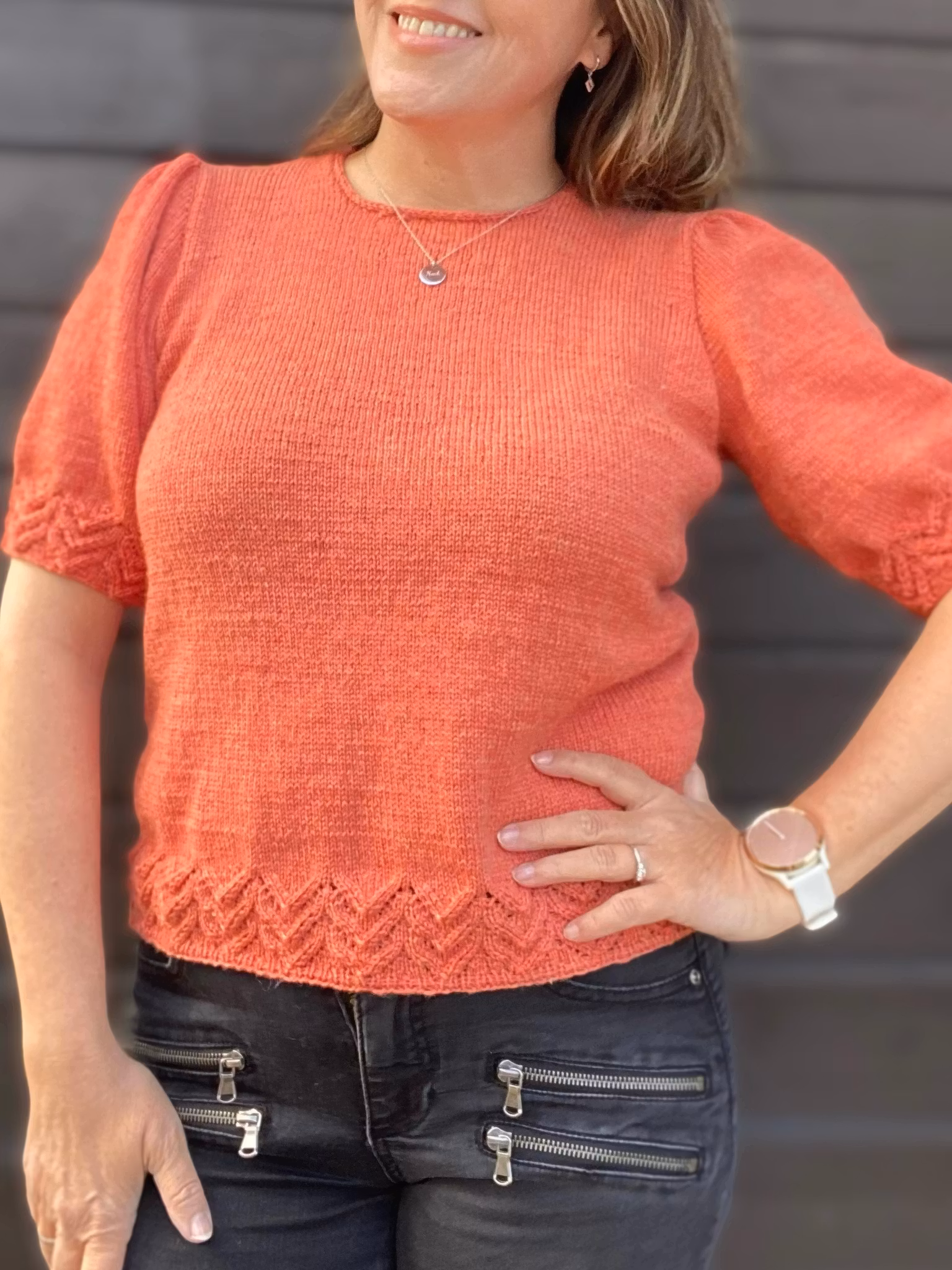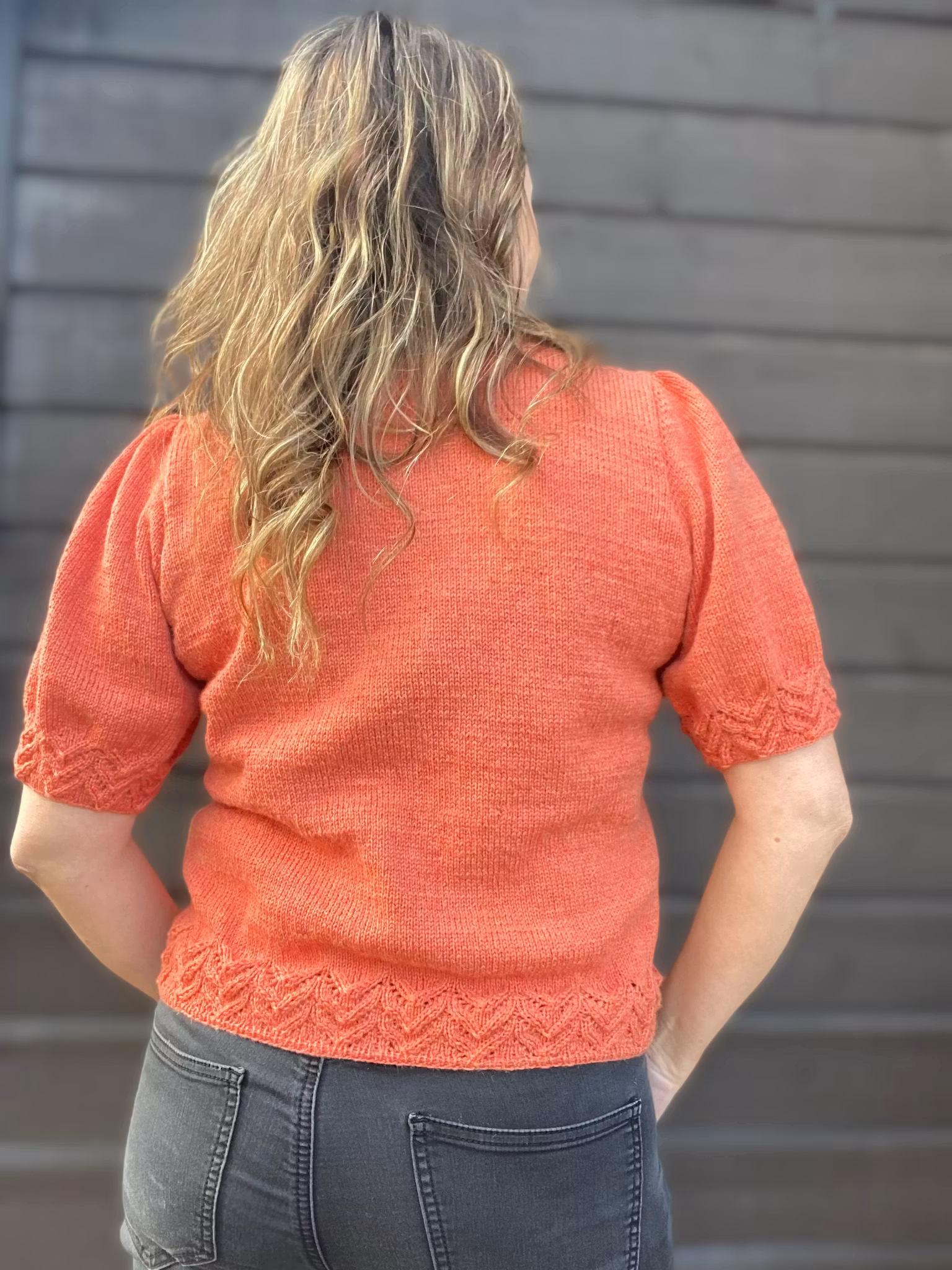 Arrowina Jumper er en elegant og lett genser med et vakkert pilinspirert mønster som setter prikken over i-en. Genseren strikkes ovenfra og ned med raffinerte detaljer som puffede ermer, dobbeltstrikkede kanter og en dekorativ avslutning i Arrowina-mønsteret. Den korte modellen gir et moderne uttrykk, og den lette merinoullen sørger for en behagelig og myk kvalitet du kan bruke året rundt.