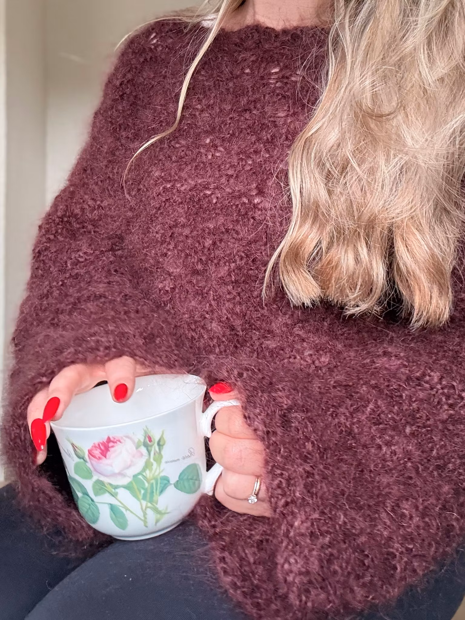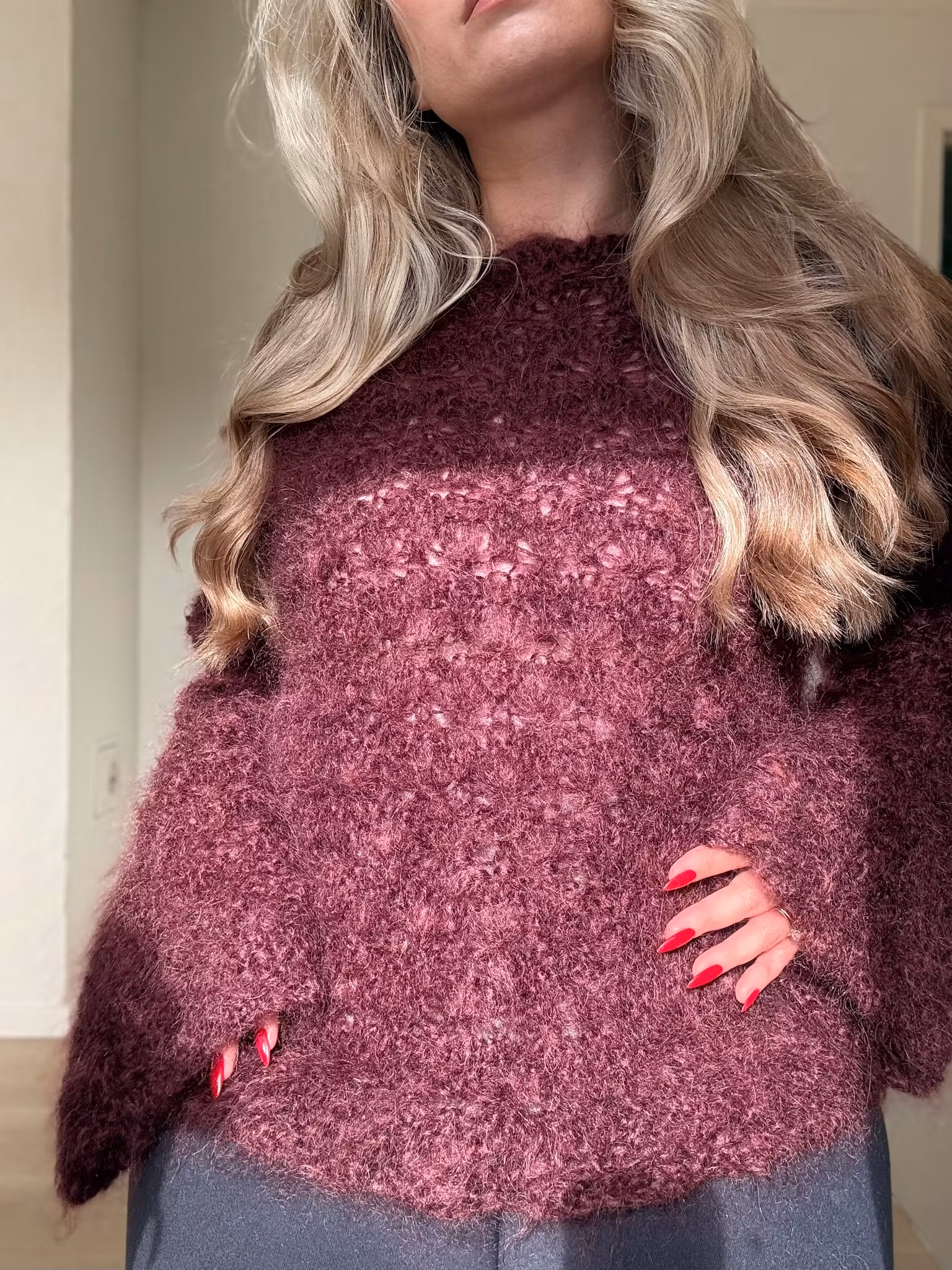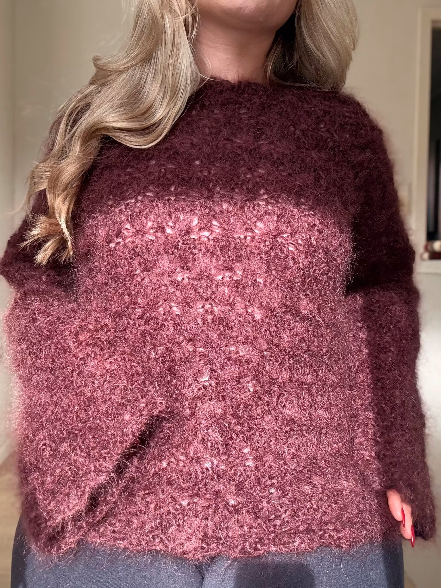 Garn: Sandnes Chunky Mohair (strikkes med 2 tråder), farge Dyp burgunder 4372