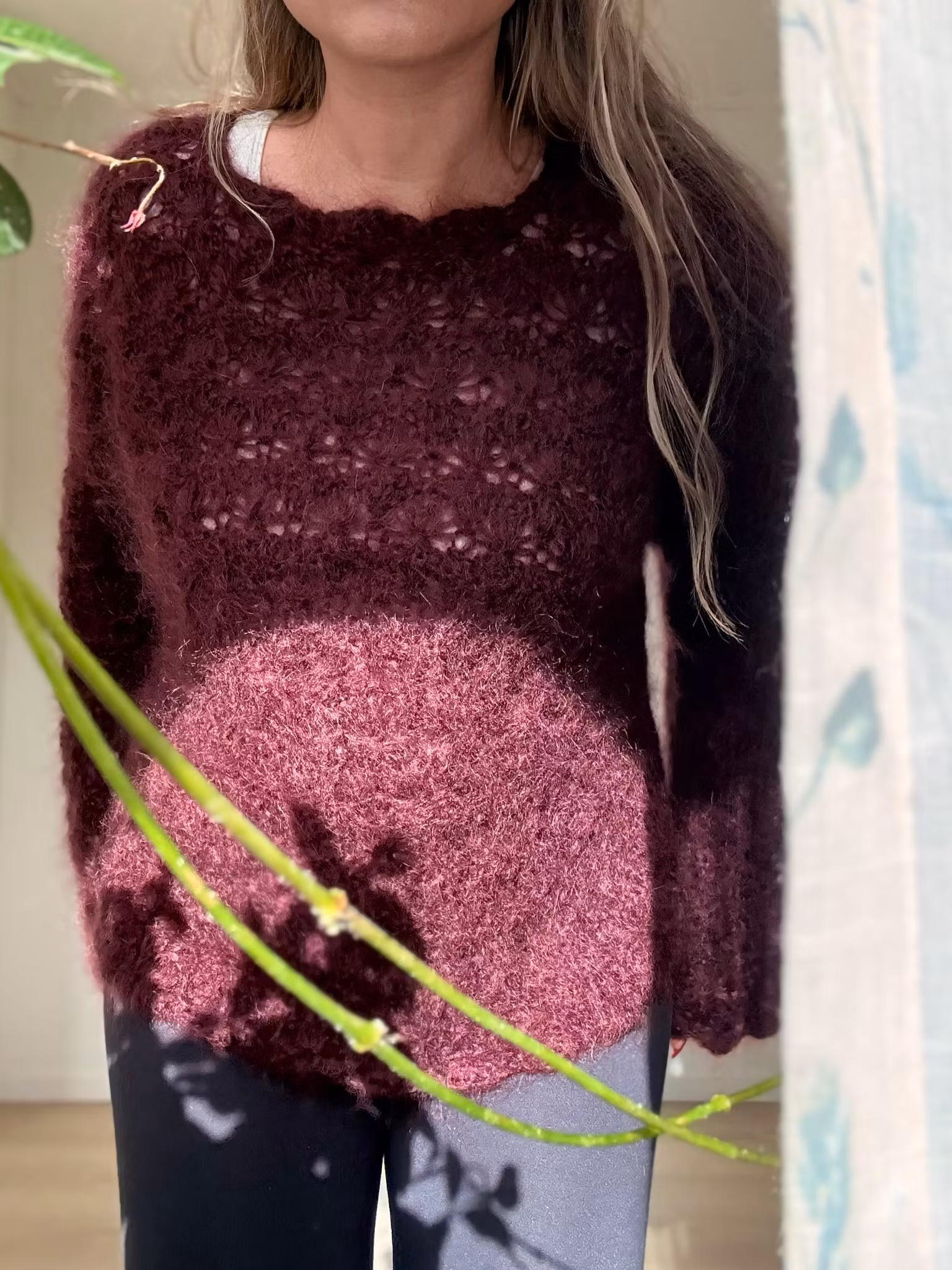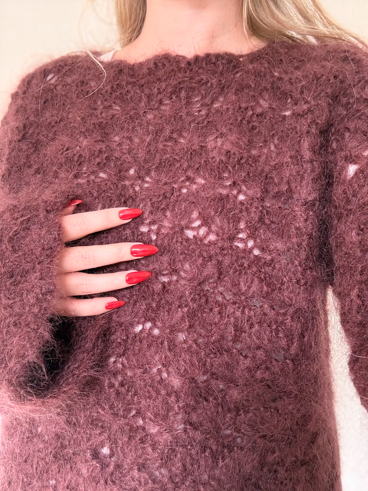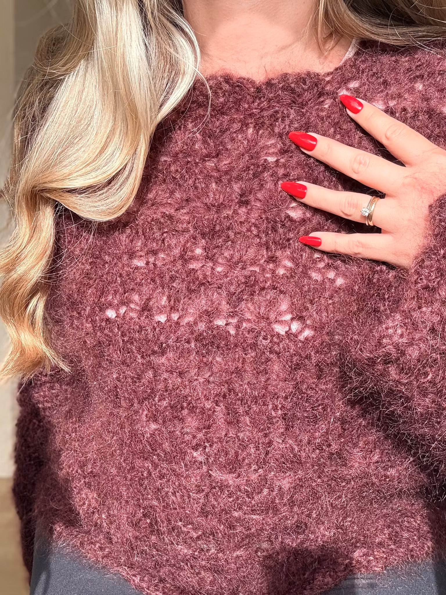 Garn: Sandnes Chunky Mohair (strikkes med 2 tråder), farge Dyp burgunder 4372