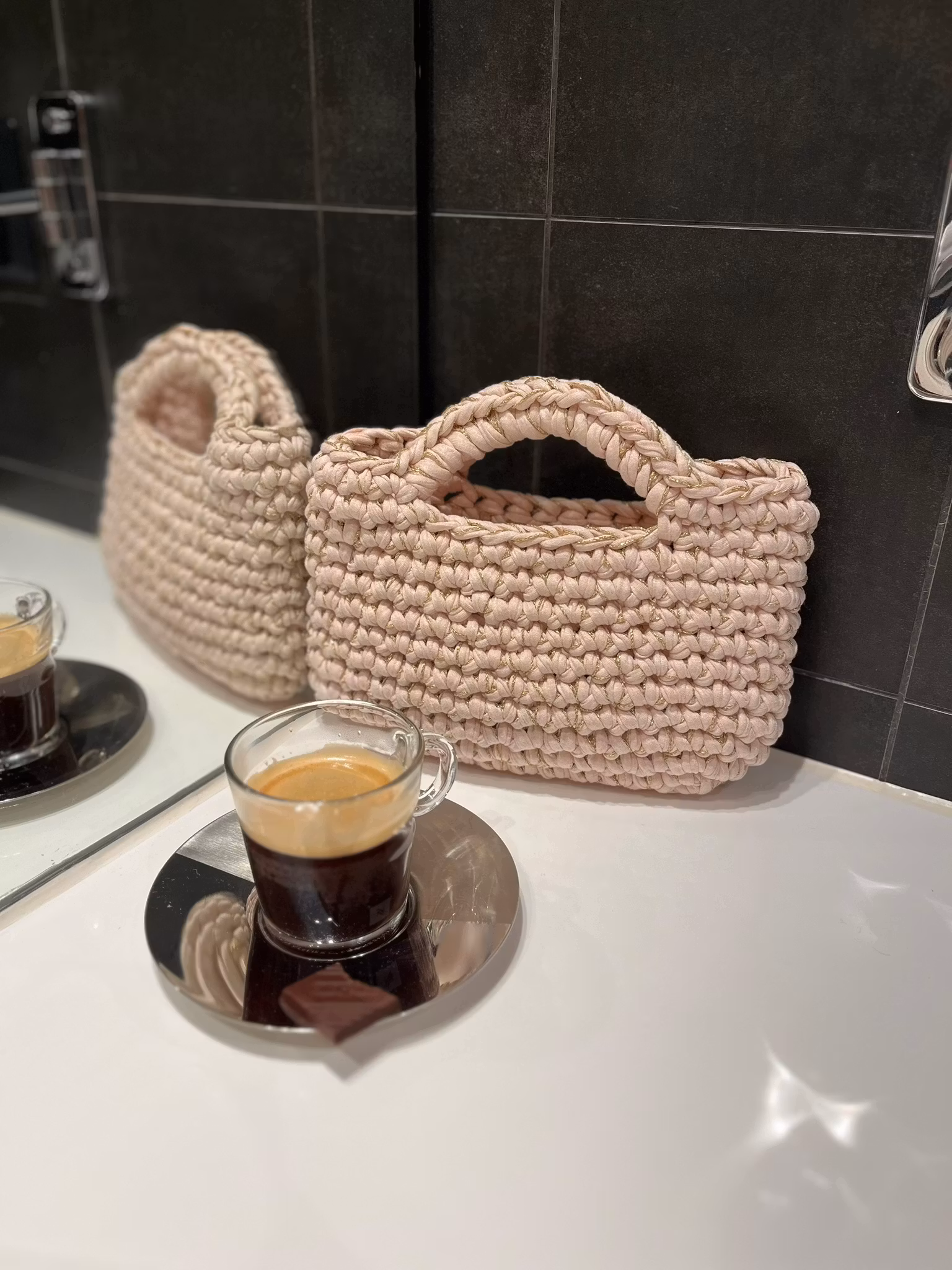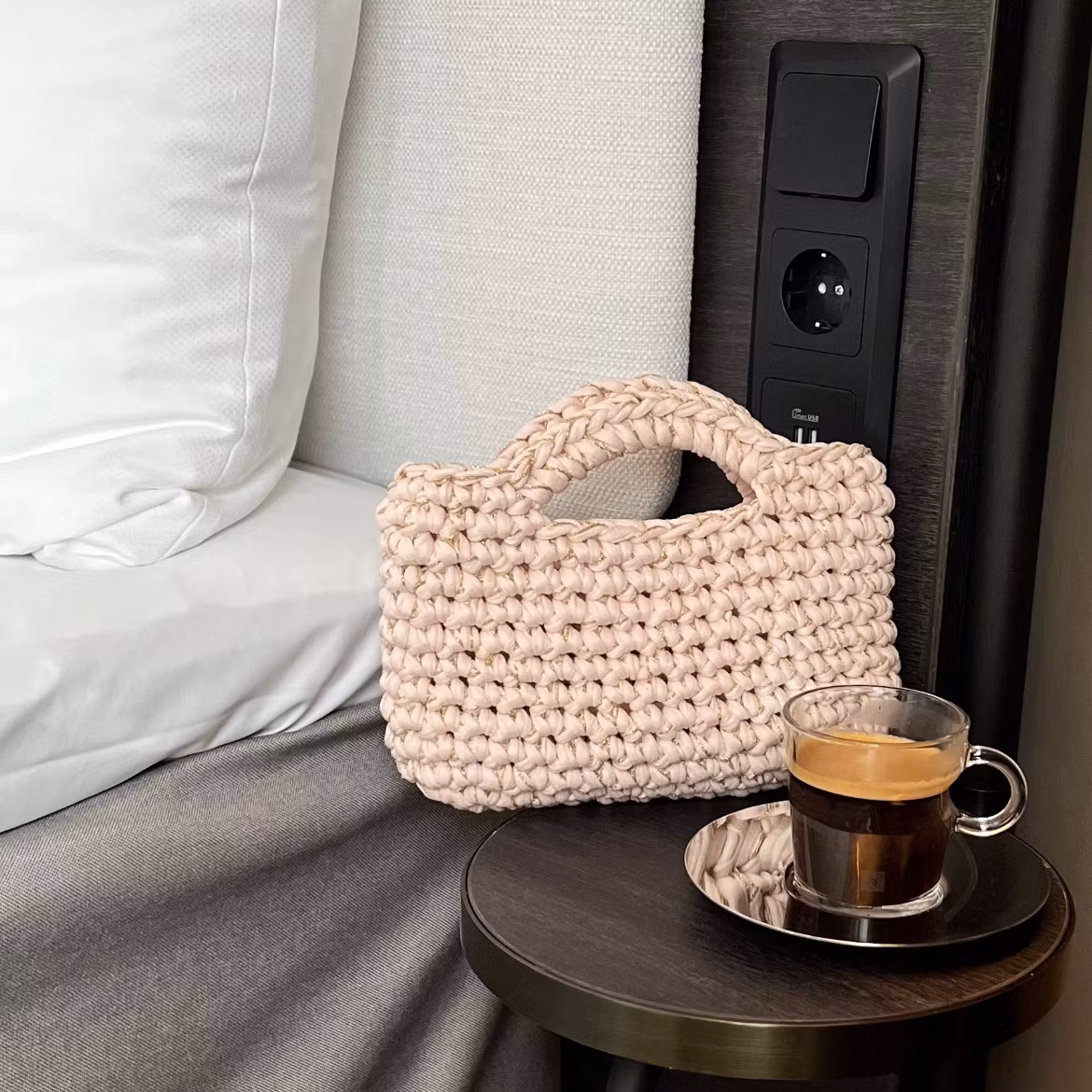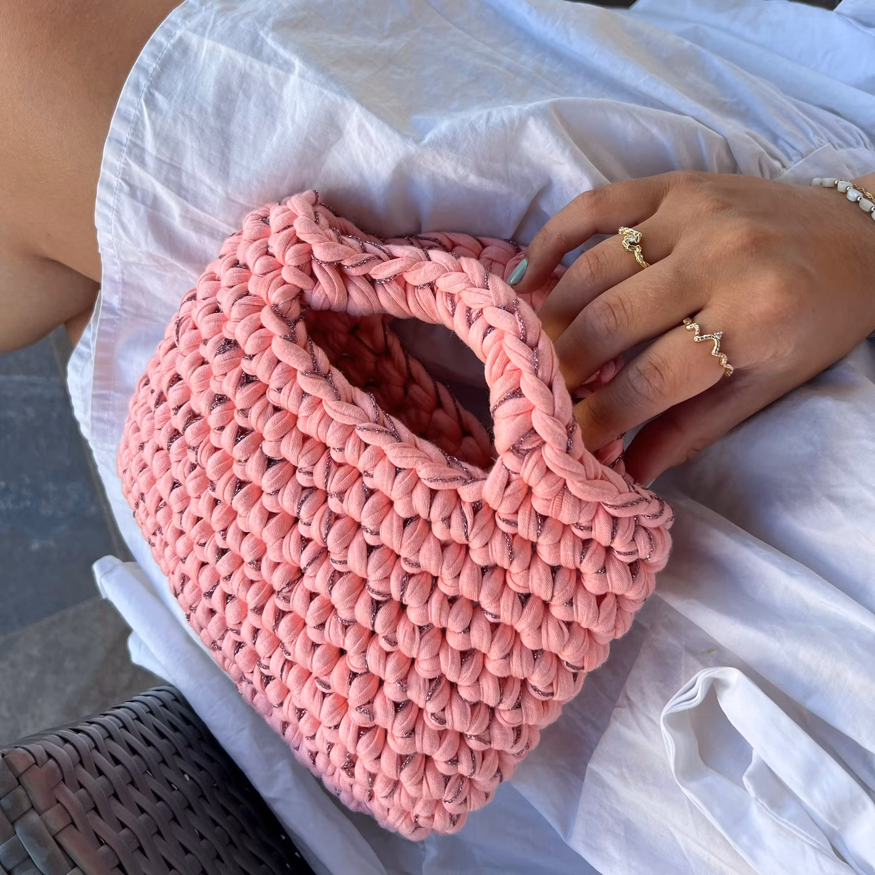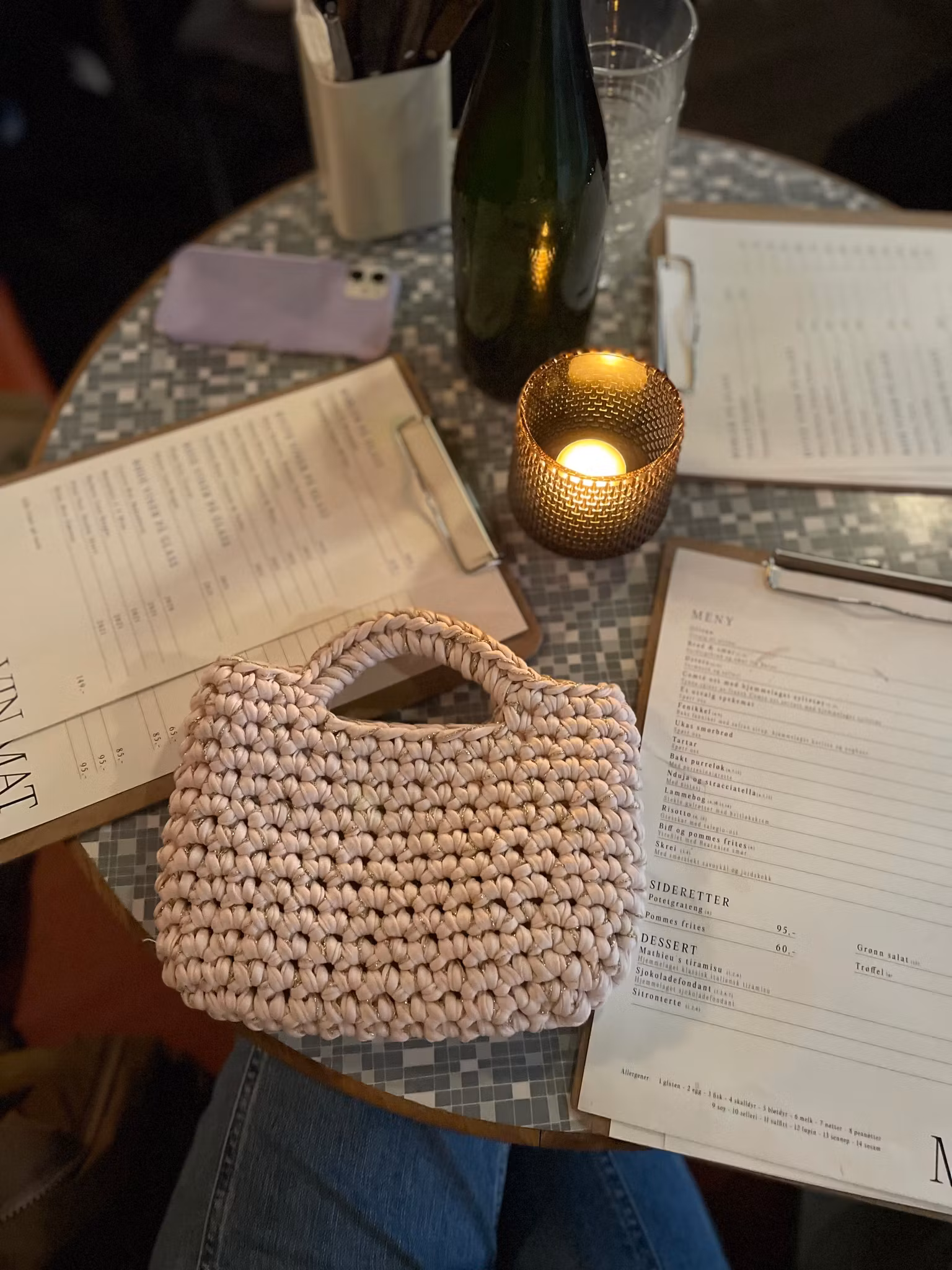Champagneveska er akkurat passe stor til det du trenger for en kveld ute, og med én runde ekstra heklemagi blir den både stødig og unik.