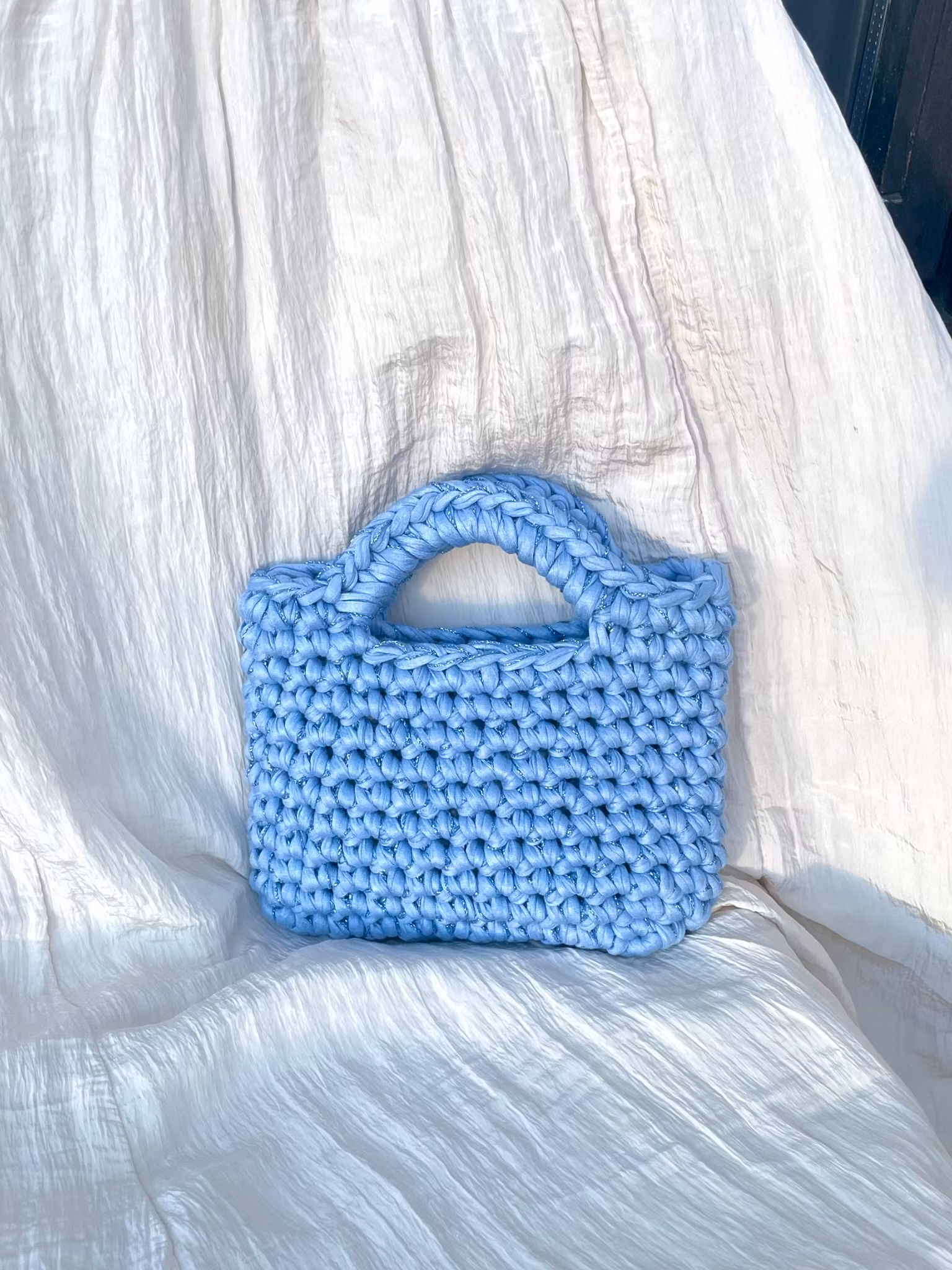 Champagneveska er det ultimate festprosjektet – liten, glitrende og klar for kvelden! Med dobbel tråd HobbyArts Fabrico og Lurex glittergarn hekles denne vesken med chunky struktur.