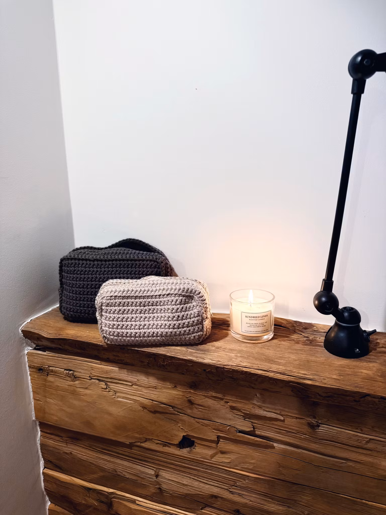 Ellea kommer i to størrelser og er en heklet toalettmappe i merinoull og egyptisk bomull. Fyll Ellea med små skatter og hverdagsfavoritter - alt du trenger for vinterens eventyr og små pust i hverdagen.