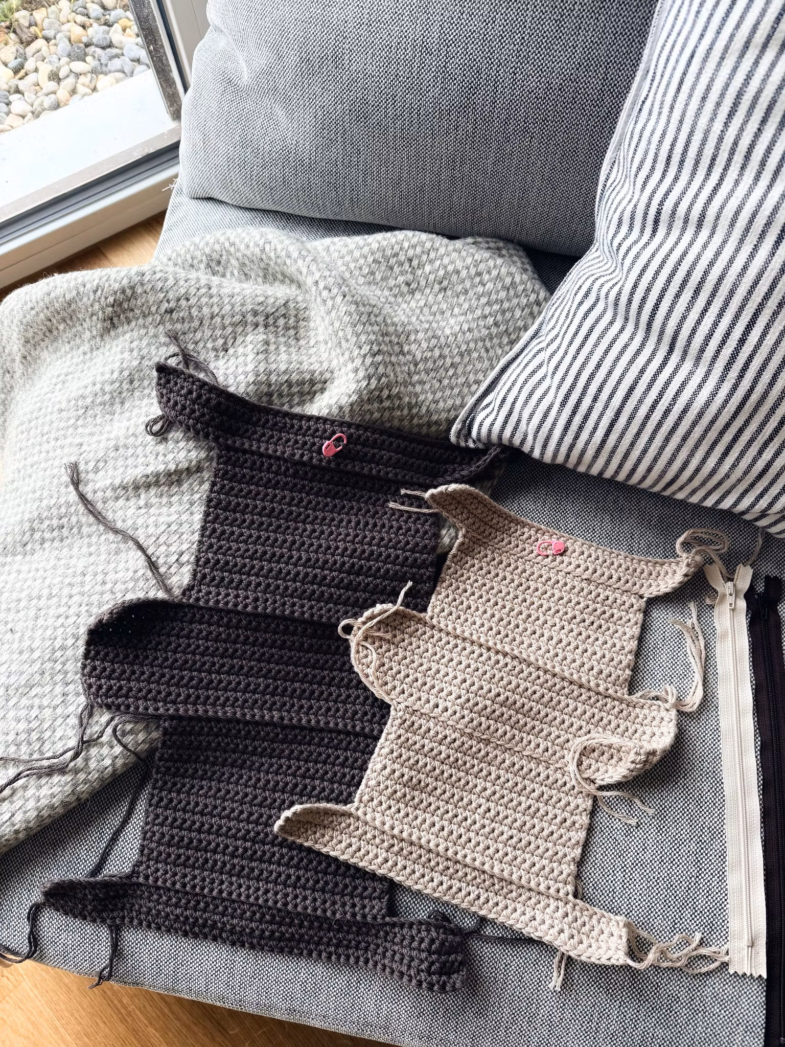 16 fm på heklenål 5 mm med 2 tråder Lerke = 10 cm