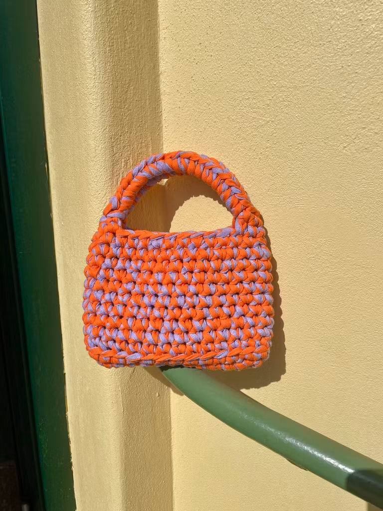 Fredagsveska hekles med to tråder HobbyArts Fabrico og heklenål 12 mm – perfekt for deg som liker raske og kreative prosjekter. Det beste av alt? Den er ferdig på en kveld!