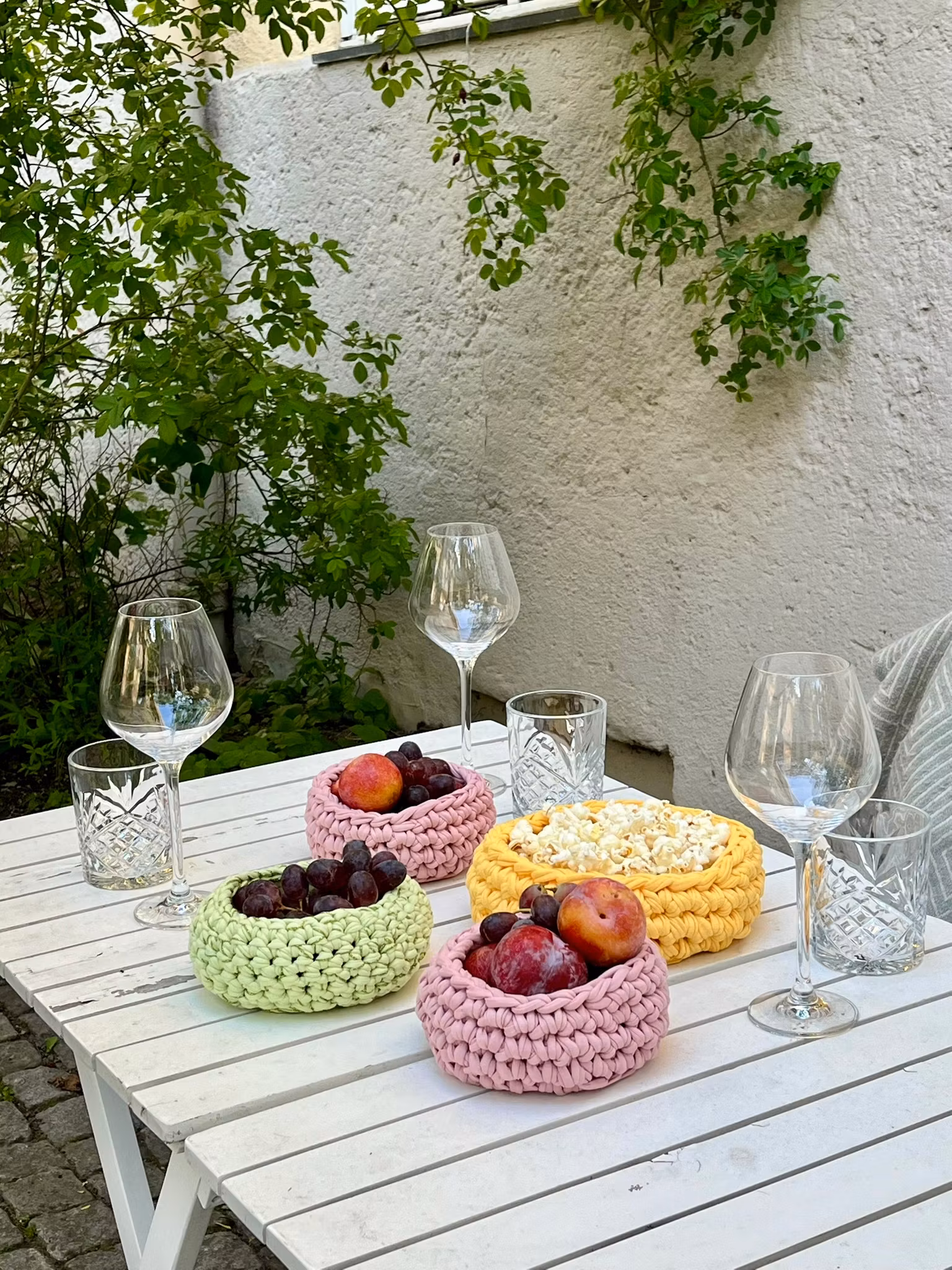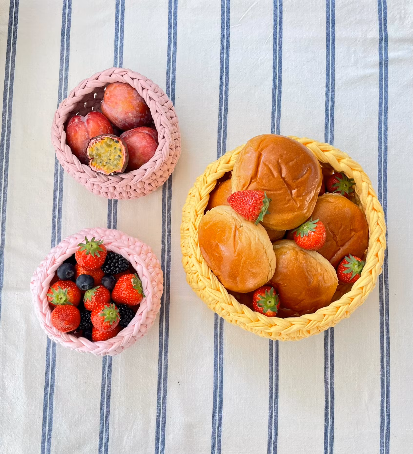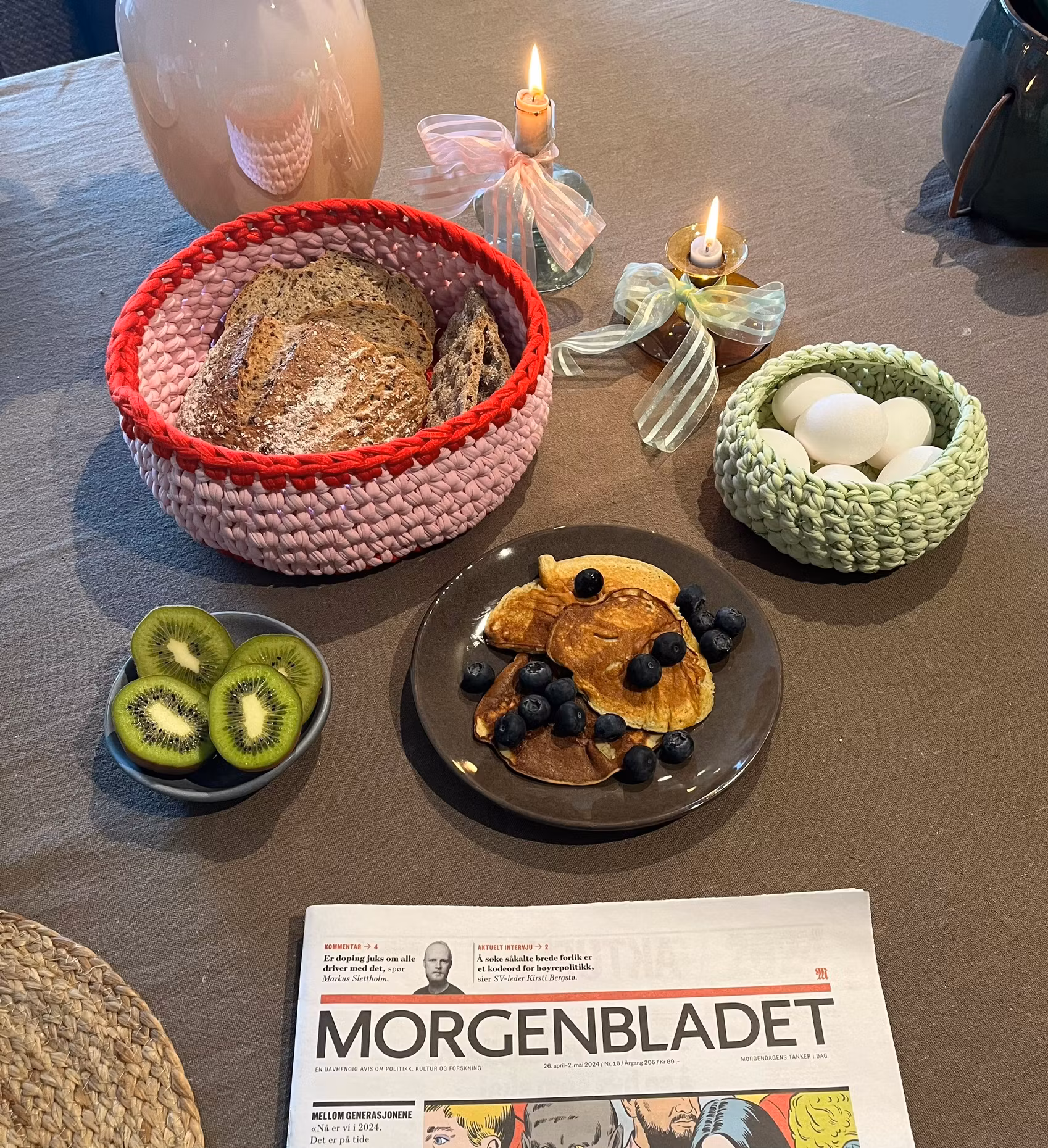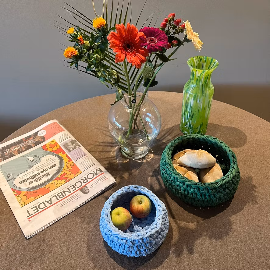 Gi morgenstunden et løft med Godmorgenkurv – kurver som gjør seg perfekt på frokostbordet, piknikduken eller som oppbevaring til småting. Du kan hekle dem i favorittfargen din – eller lage en hel serie i ulike farger!