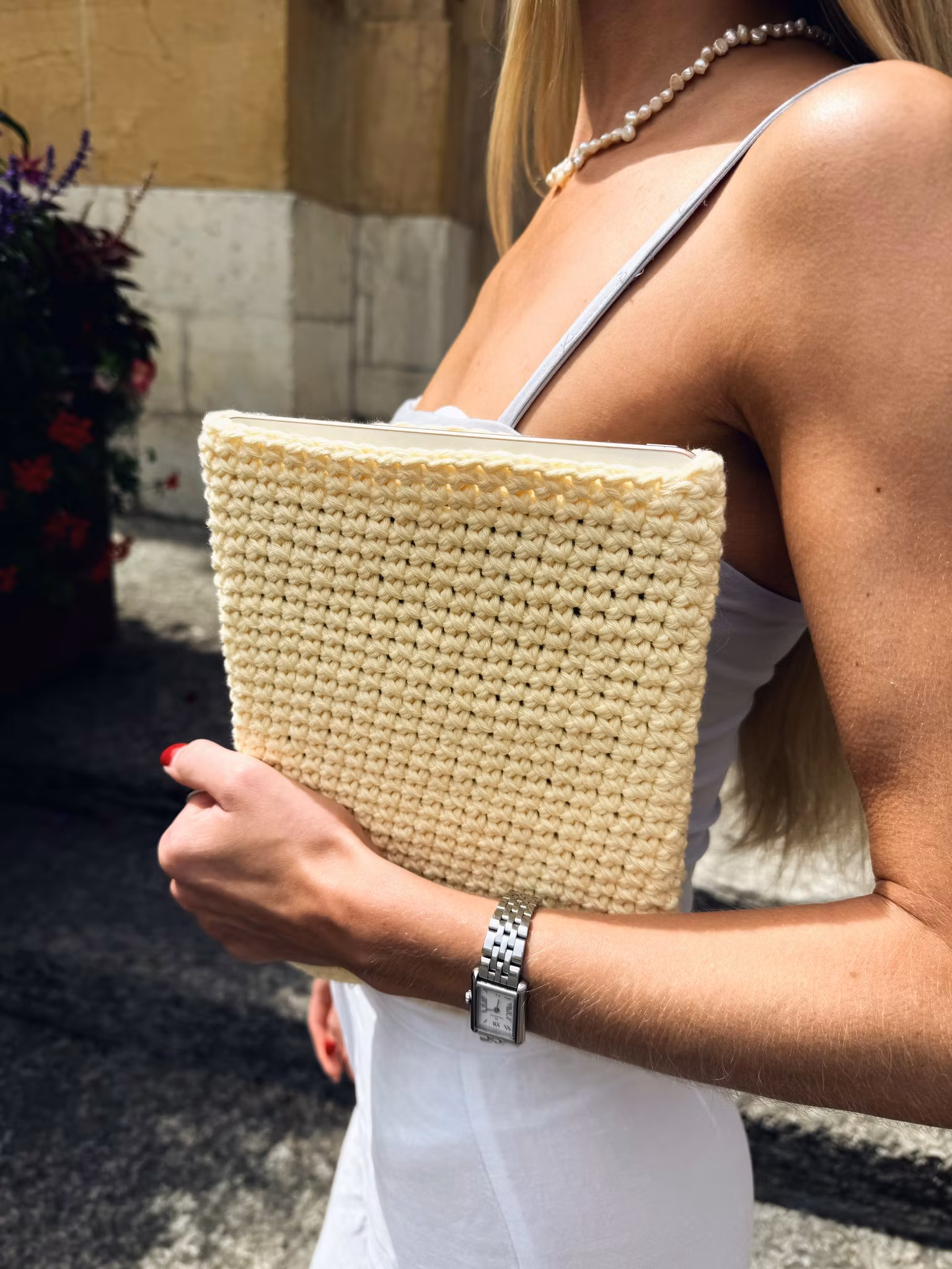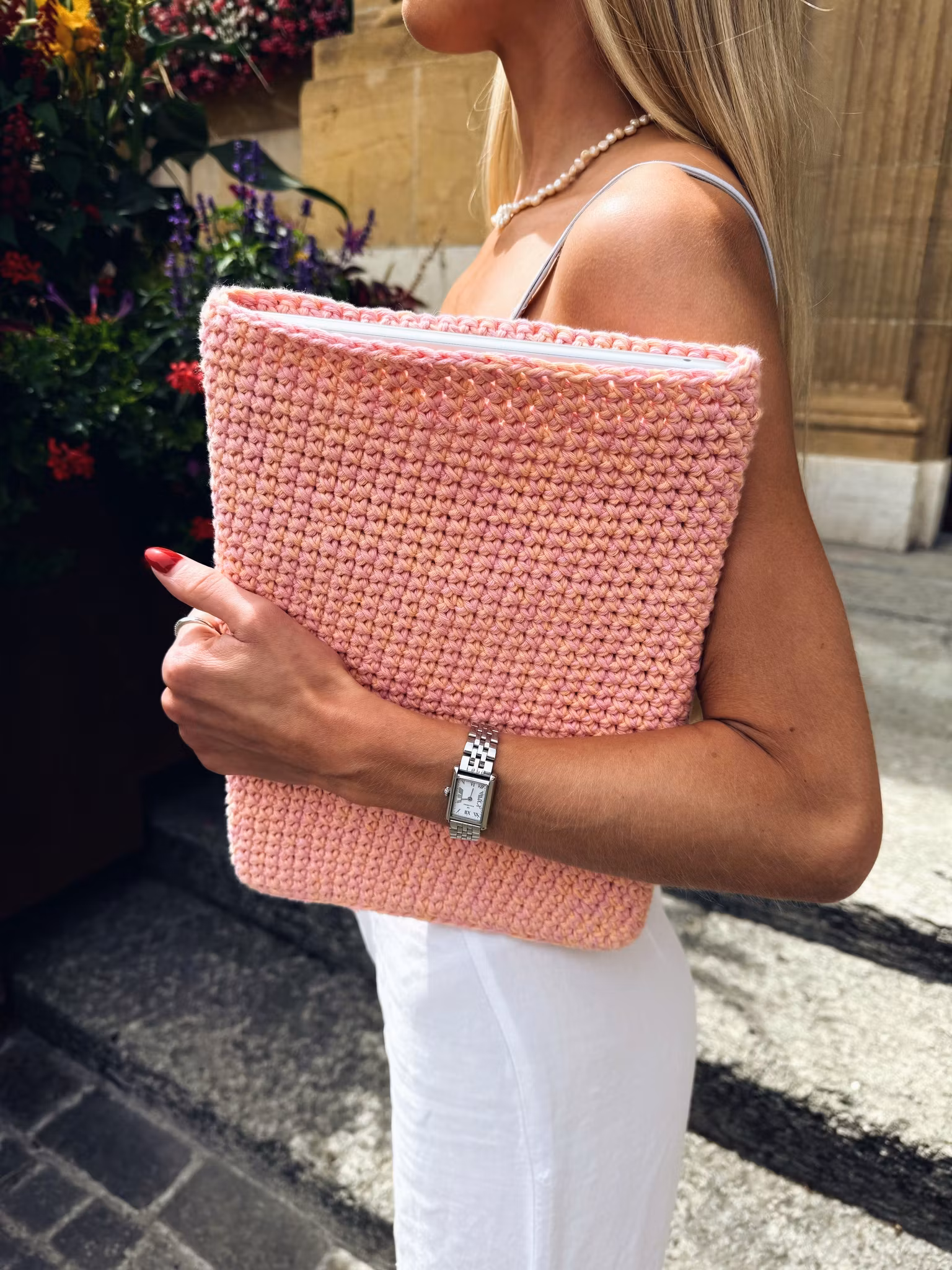 Nea er en heklet mappe i bomull, perfekt til studiehverdagen. Den beskytter laptopen eller nettbrettet ditt når du er på farten – fra kaféjobbing til forelesningssal.