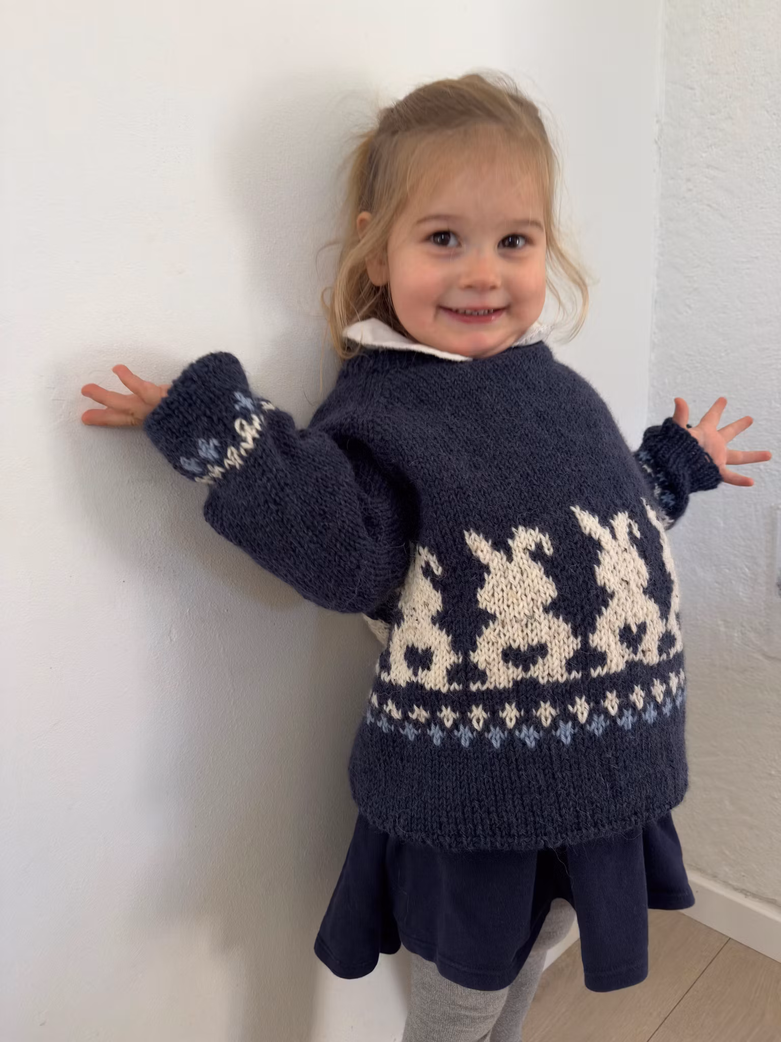 Røff Harepus er en sjarmerende og tøff barnegenser fra Ull og strikk, perfekt for små eventyrere. Med et gjennomført mønster av stiliserte harer strikket rundt livet og ermene, kombinerer denne genseren lekne detaljer med klassisk design. Genseren strikkes i Sandnes Alpakka Ull – et mykt og slitesterkt garn som holder godt på fasongen og varmen gjennom hele høsten og vinteren.