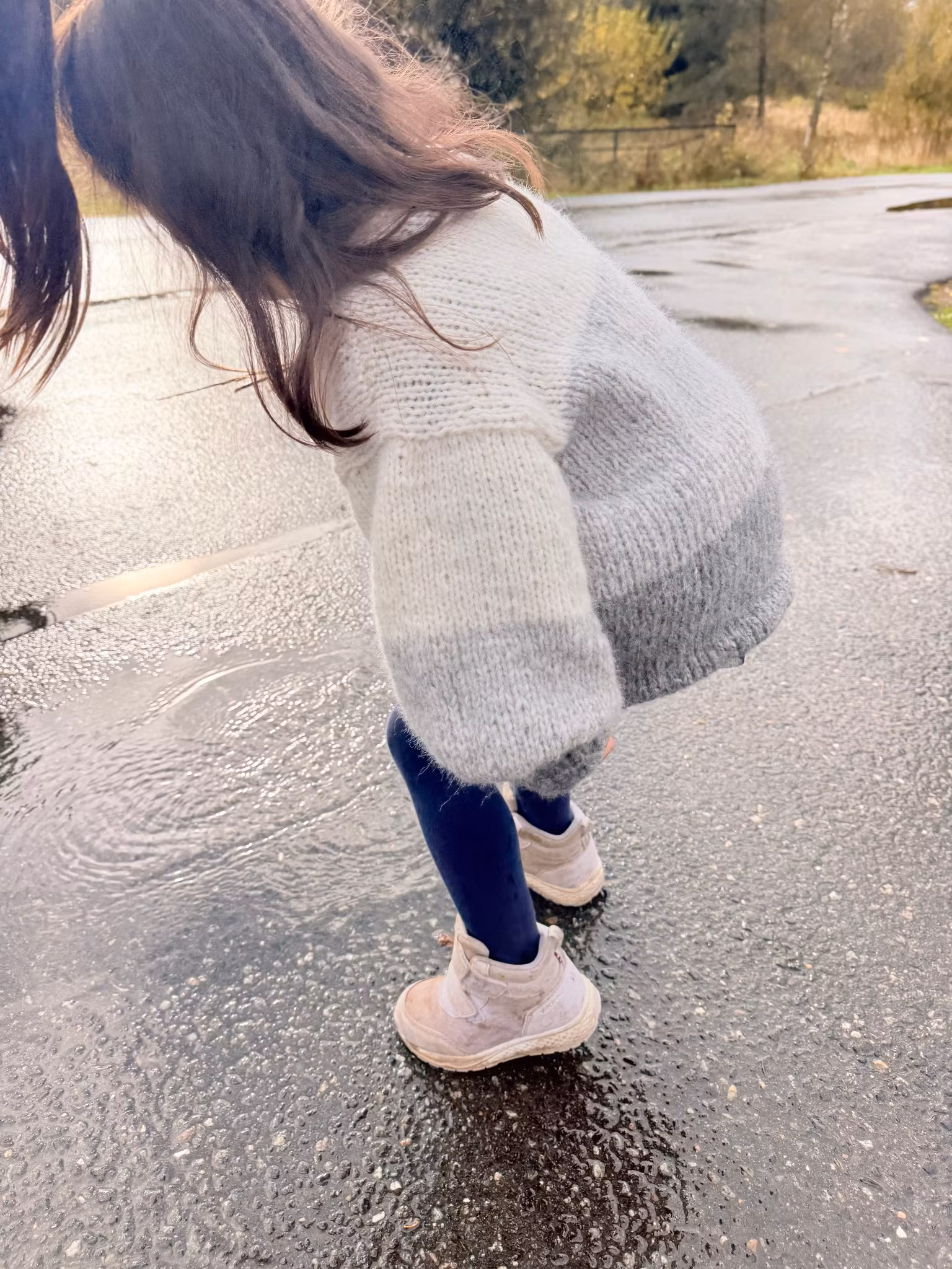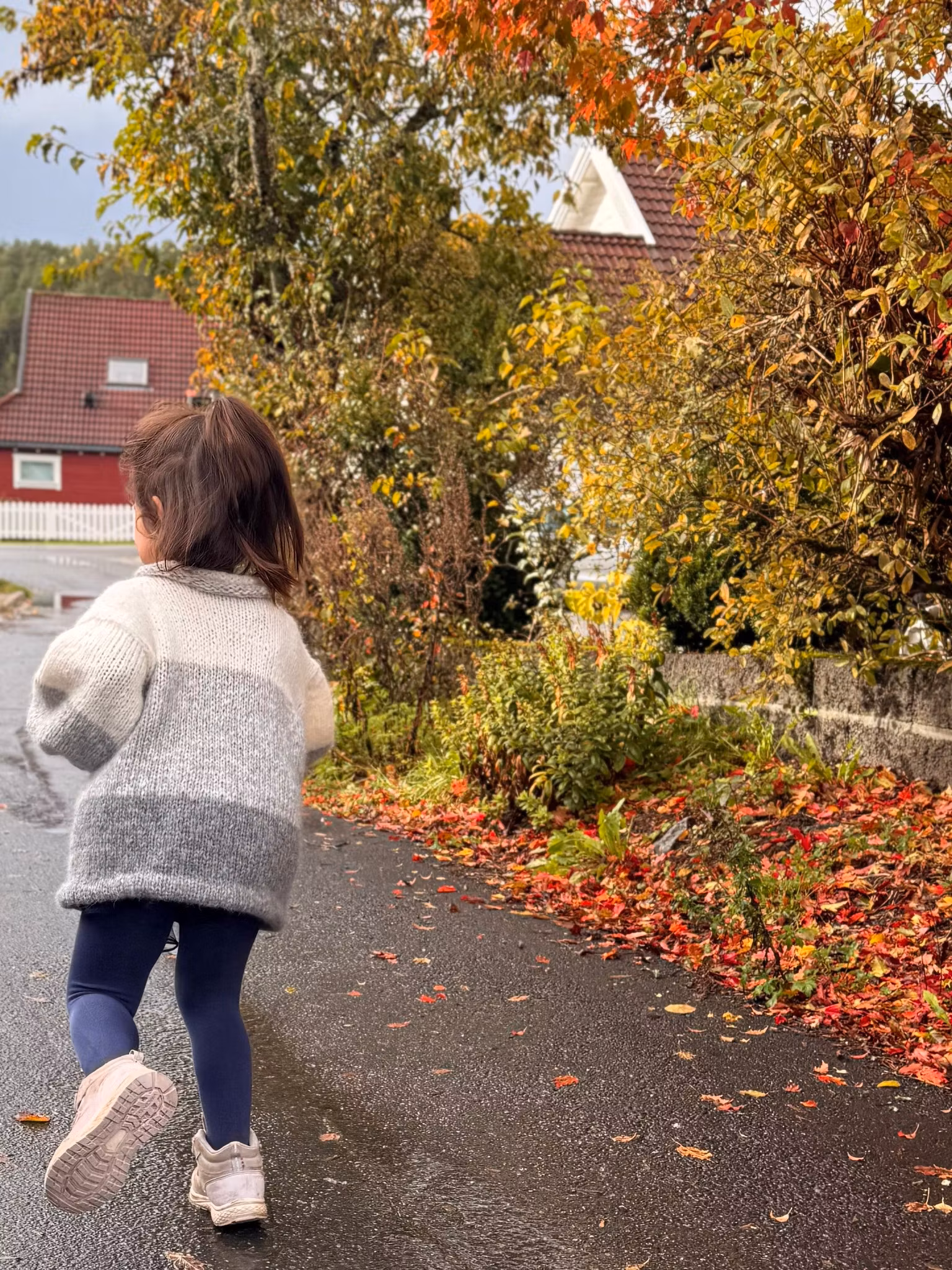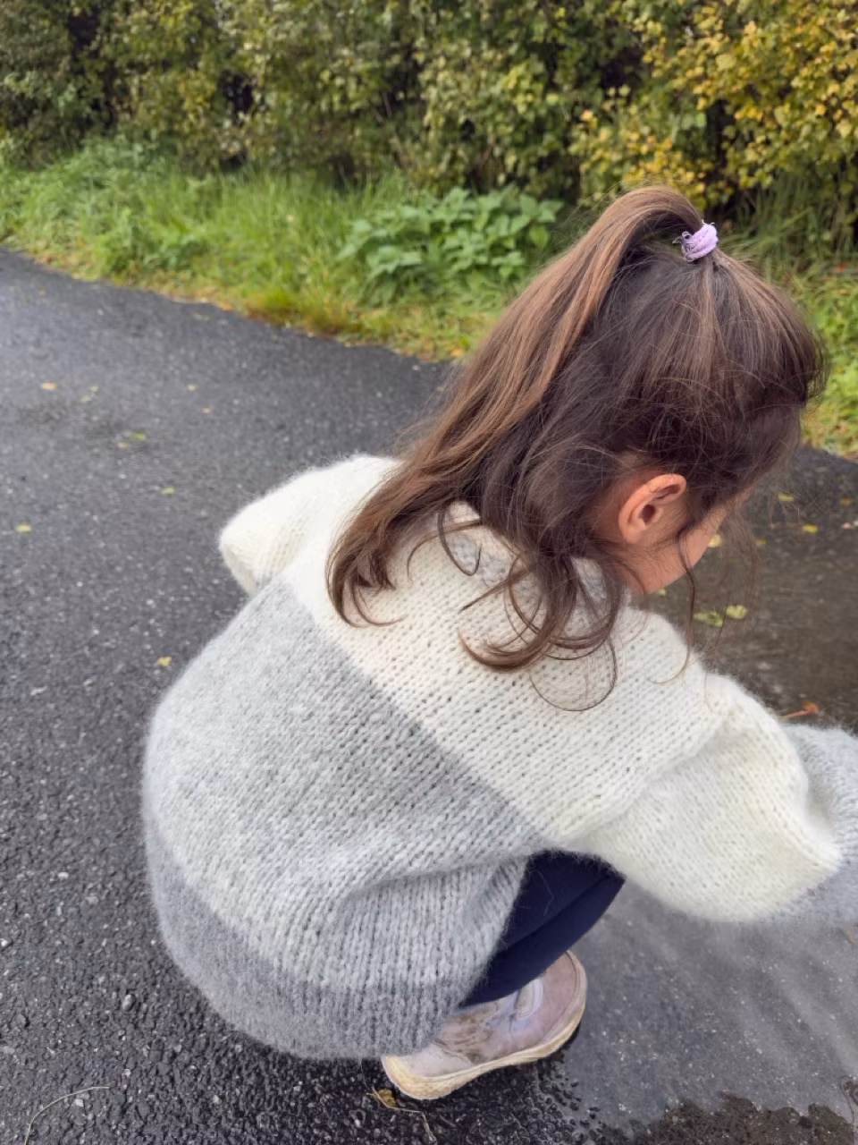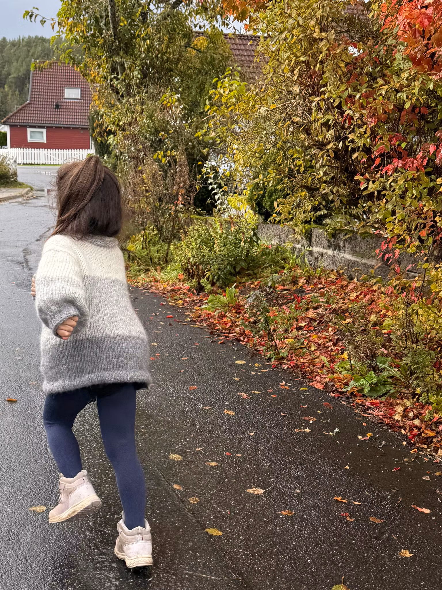 Signes genser er en varm og deilig barnegenser strikket i mykt Puno-garn fra Rauma. Den strikkes nedenfra og opp i tre farger, og finnes i to varianter: én i gråtoner og én i friske rød- og rosanyanser. Genseren har en løs og komfortabel passform, og du kan velge mellom to ulike ermebredder.