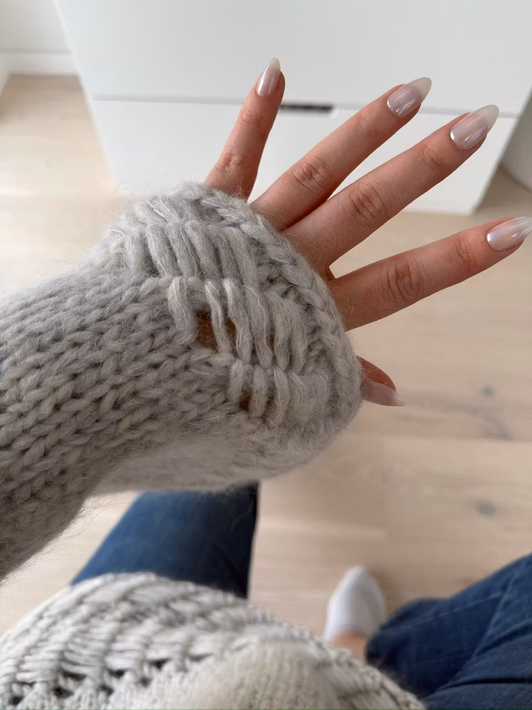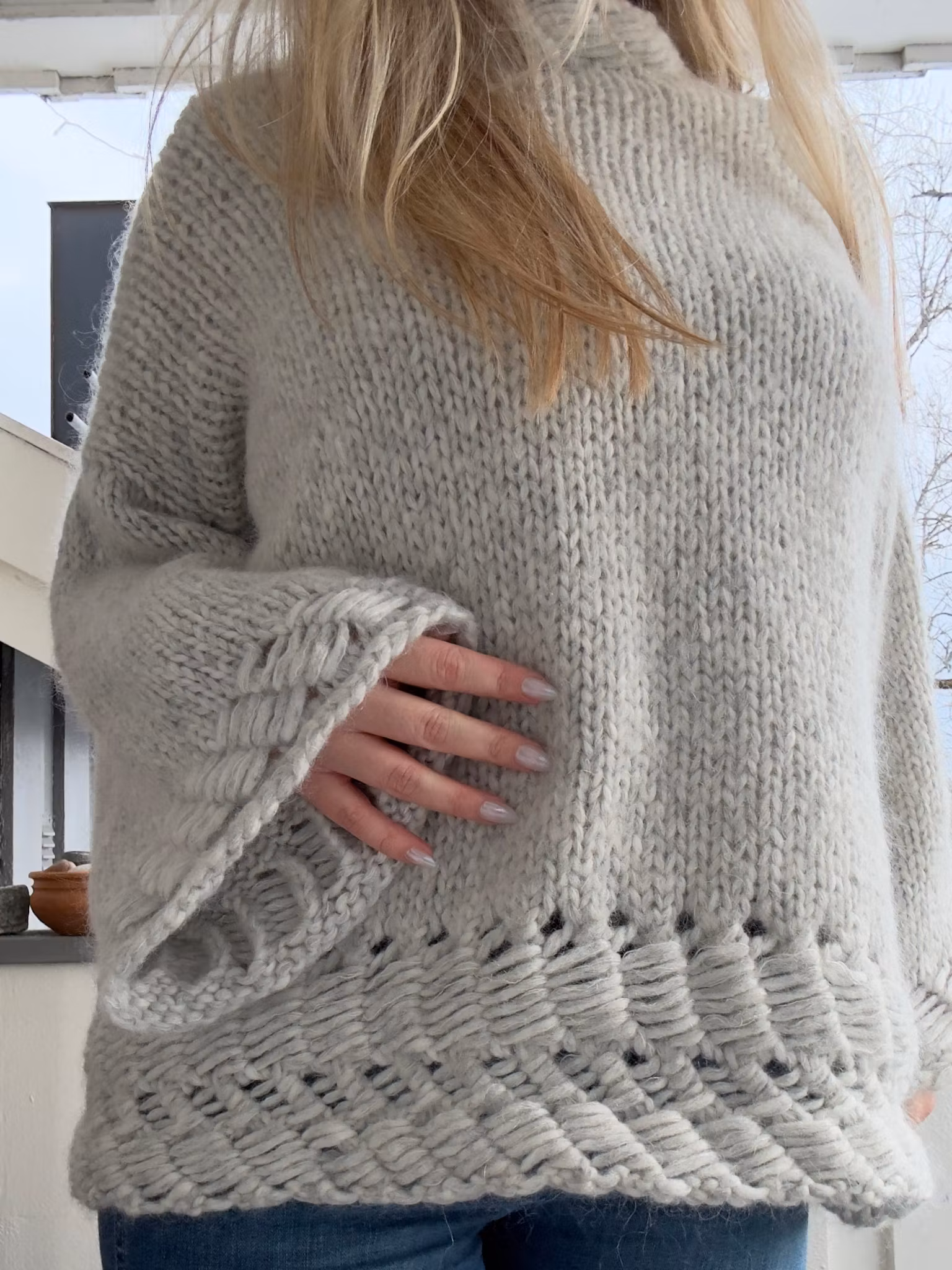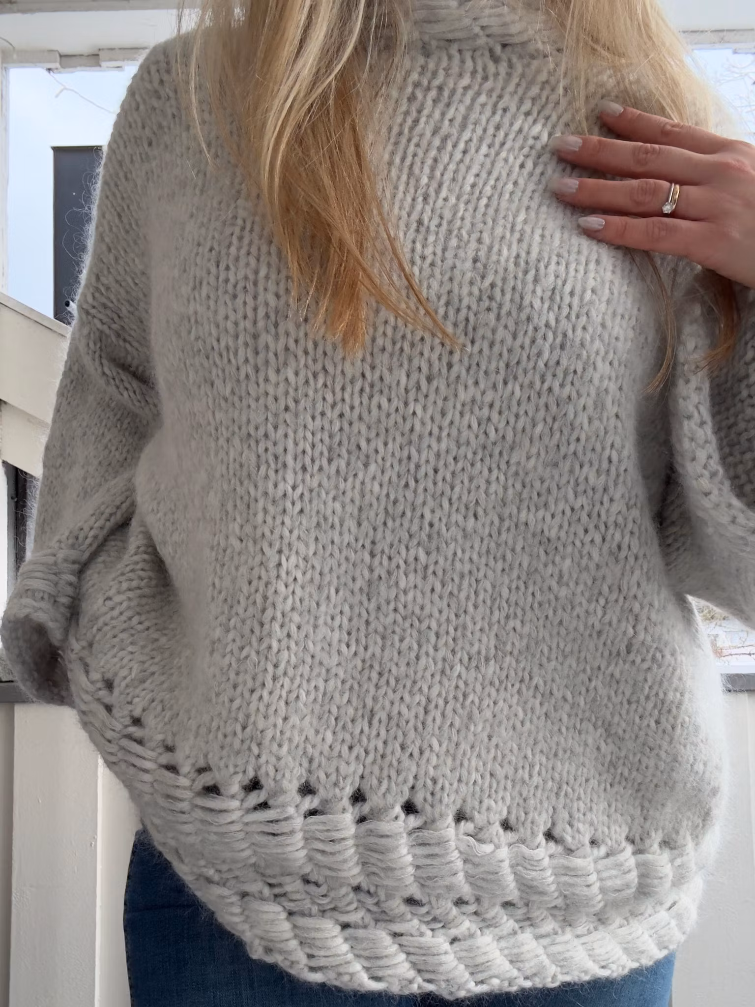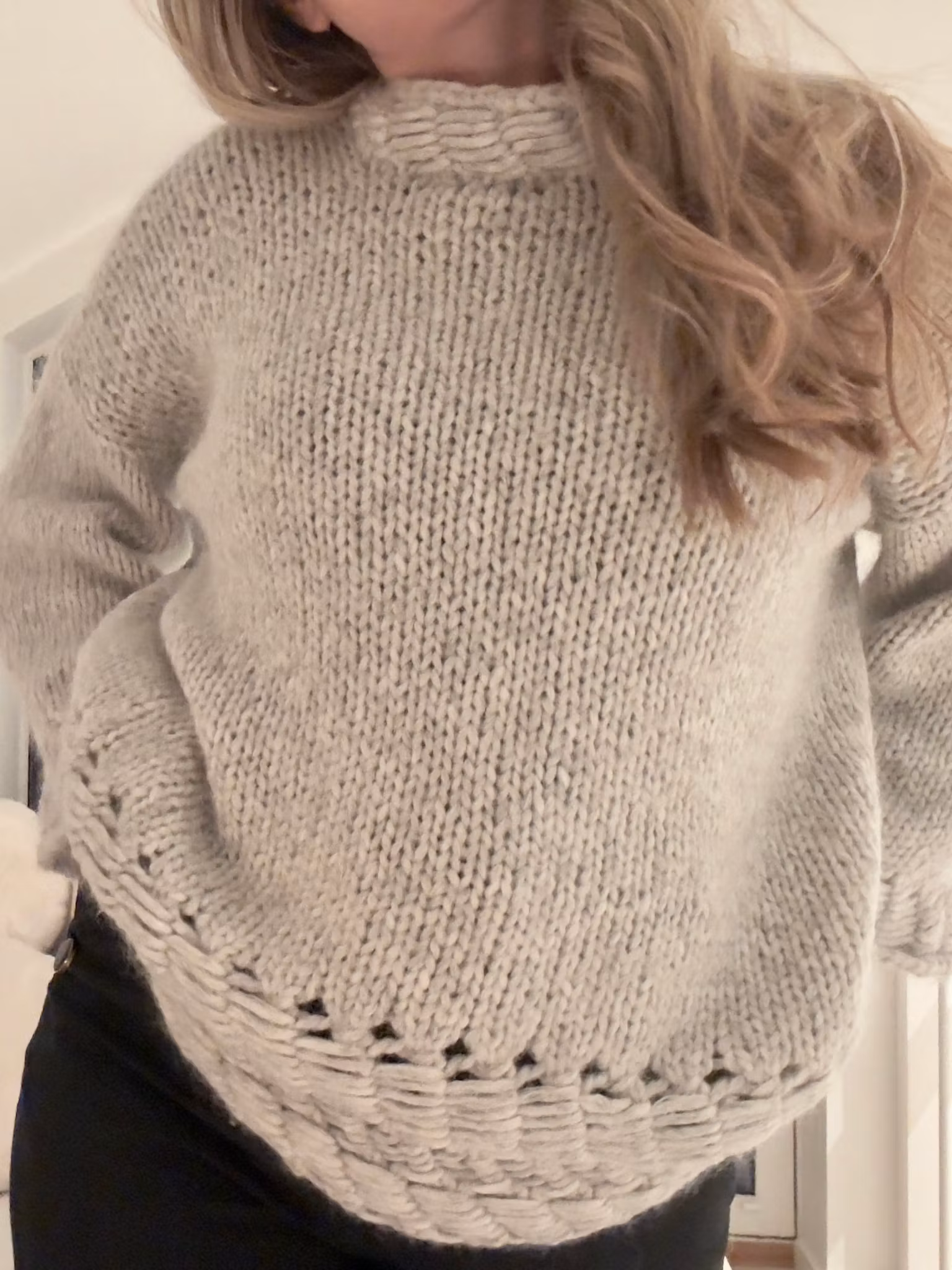 Konstruksjon: Strikkes nedenfra og opp på rundpinne, deles til for- og bakstykke ved ermehull