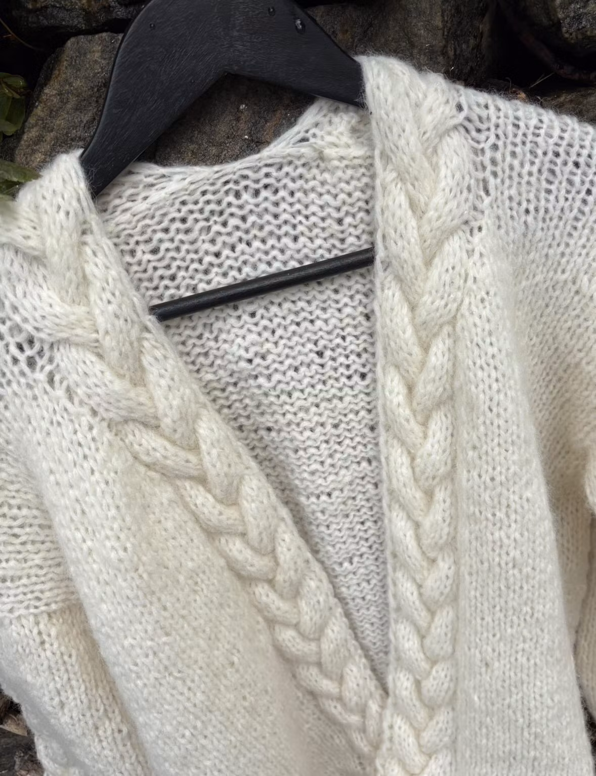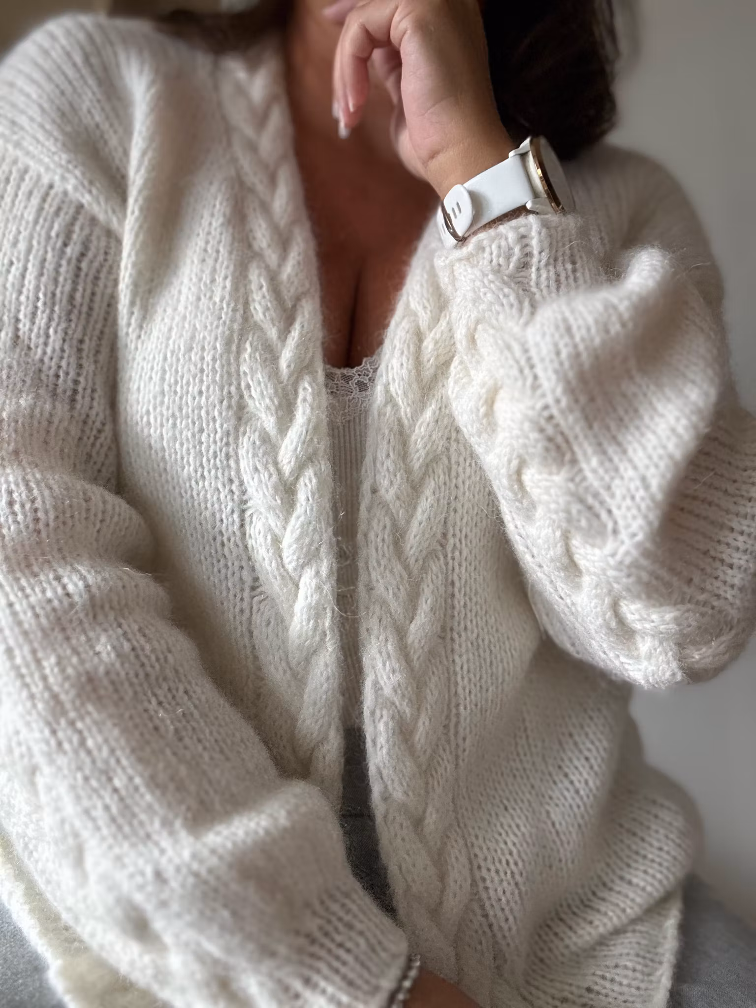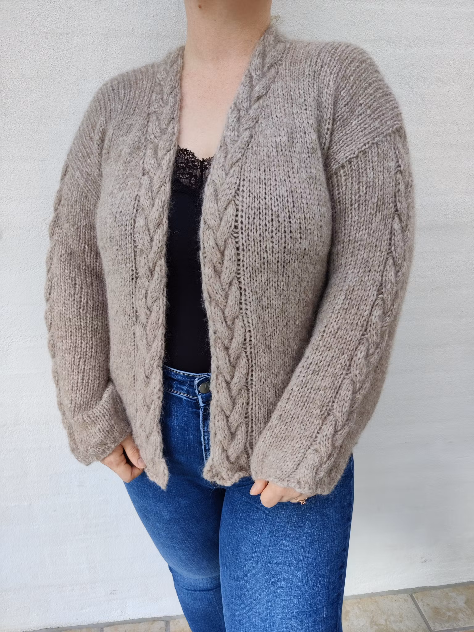 Snuggles Cable Cardigan fra Abbaknit Design er en myk, oversized cardigan med dekorative flettemønstre som gir et luksuriøst uttrykk. Den strikkes ovenfra og ned, med flott kabelstruktur langs ermene og forstykkene. Perfekt for deg som elsker komfort kombinert med stil!