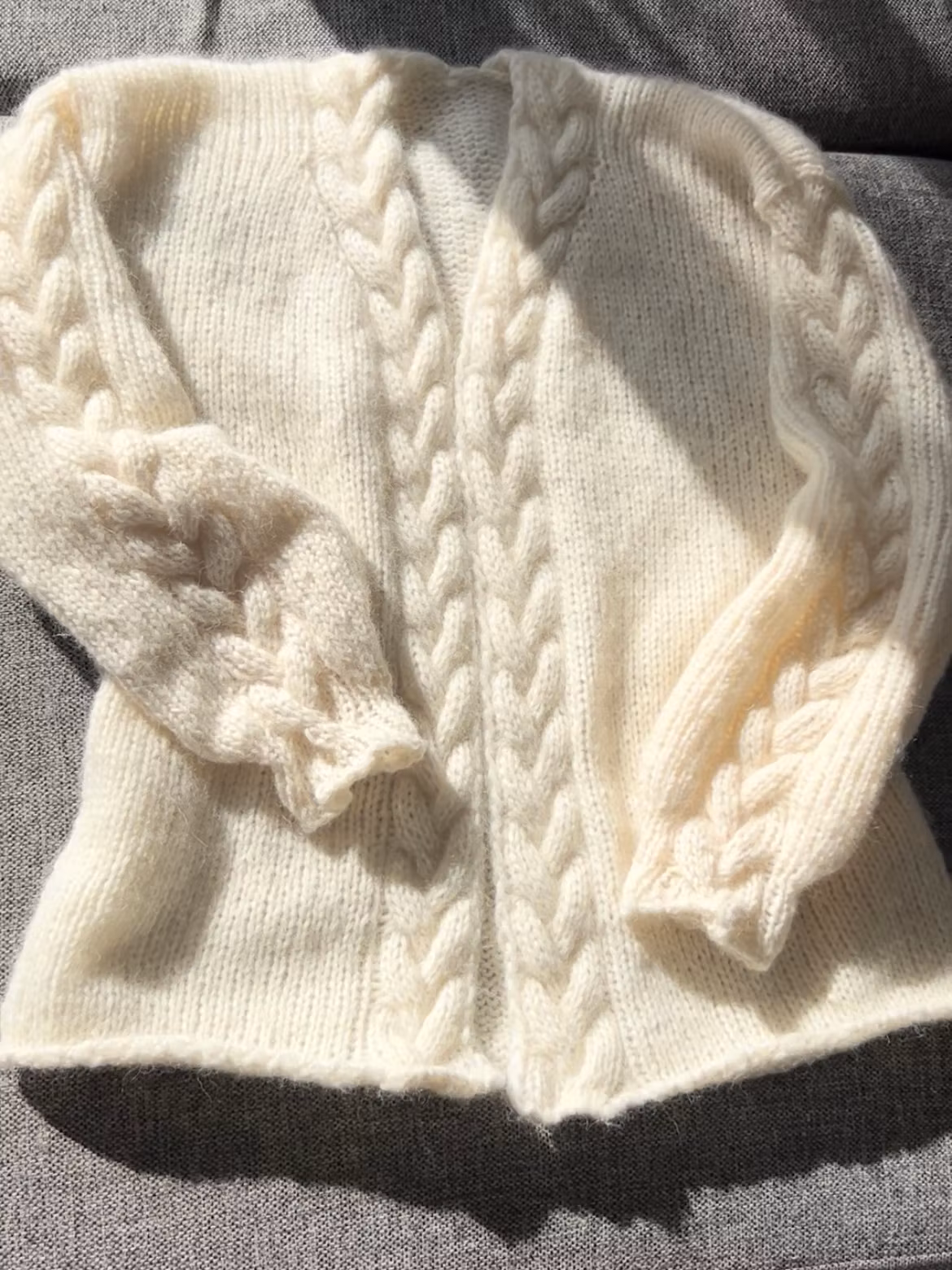 Oppskriften er laget for tykt garn, som Alpaca Bris fra Viking Garn – en herlig blanding av babyalpakka, merino og nylon. Jakken strikkes på pinne 8 mm og har en strikkefasthet på 12 masker per 10 cm, noe som gir et luftig og lett uttrykk.