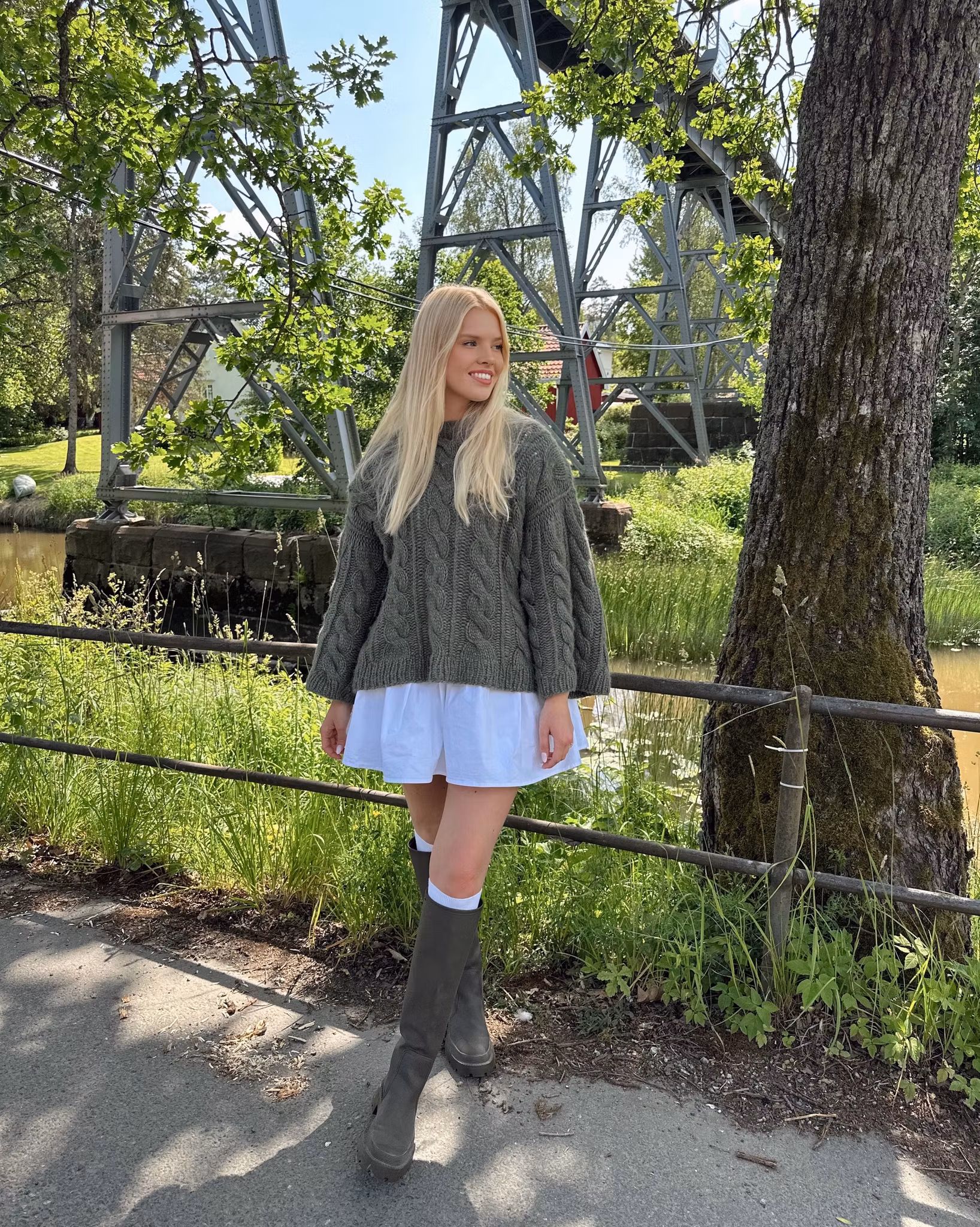Flettestrukturen gir plagget dybde og karakter, samtidig som passformen gjør det til et hverdagsplagg du vil bruke igjen og igjen – hele året. Denne genseren passer like godt over sommerkjoler som til jeans og støvler.