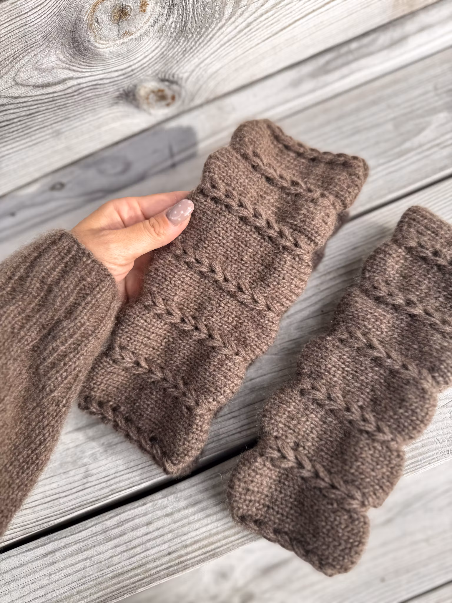 Strikkefasthet: 22 masker per 10 cm i glattstrikk